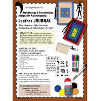 OBJECTIVE: Students will learn about the theme while creating a useful and decorative leather project. Lesson includes history and new vocabulary words. Creativity, math and dexterity skills will be exercised to design, personalize, color and then assemble the project. Plus A Look At “Why We Study Archaeology & Paleontology (Fossils)”.